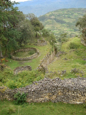 I´m sure, by modern standards, they had a hard life, but what pride they must have lived with perched on top of the world in this fortified kingdom. In all, millions of cubic feet of stone were used to build this place. There is something appealing about the hundreds of round stone dwellings that housed the Chachapoyans. Perhaps it´s just the fact that they didn't go with the square, maybe it's that the roundness just fits well with the the roundness of nature, or perhaps it´s just that it's easy to imagine a bunch of cute little gnomes scampering in and out of these homes. (The gnome fantasy is gone when Melissa reminds Aaron that the walls of this place were adorned with enemies' heads.) Melissa discovered that the acoustics in these cylindrical stone homes is terrific -- hmmm... maybe Aaron will find an excuse to build one of these some day.